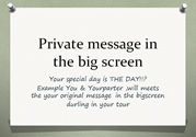はなむけの言葉など、形ではなく思い出を大きなスクリーンで贈ってみるのはいかがですか?年に1回言葉のプレゼントは将来、記念日になるかもしれません!下記内容ご確認のうえ、お申し込みください。